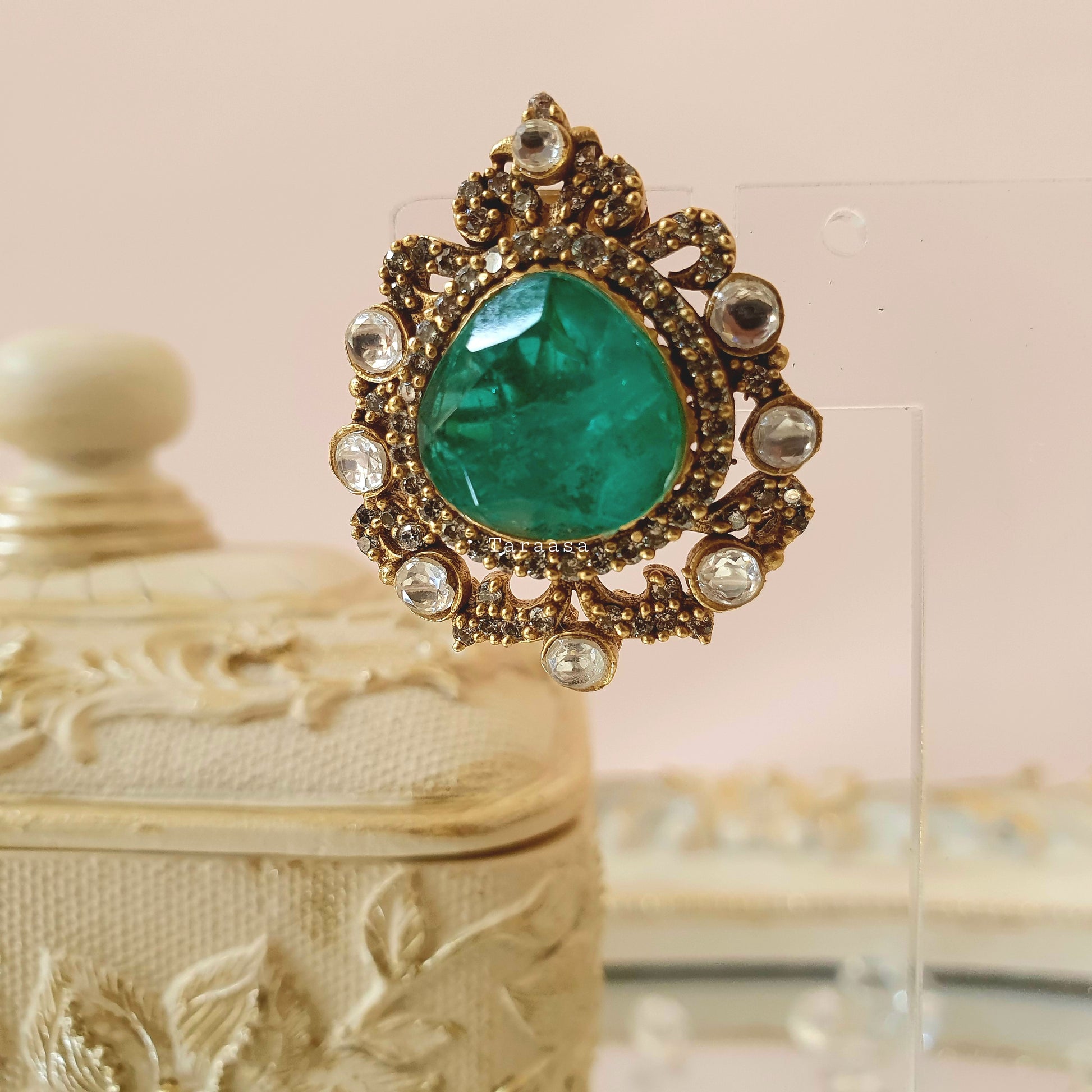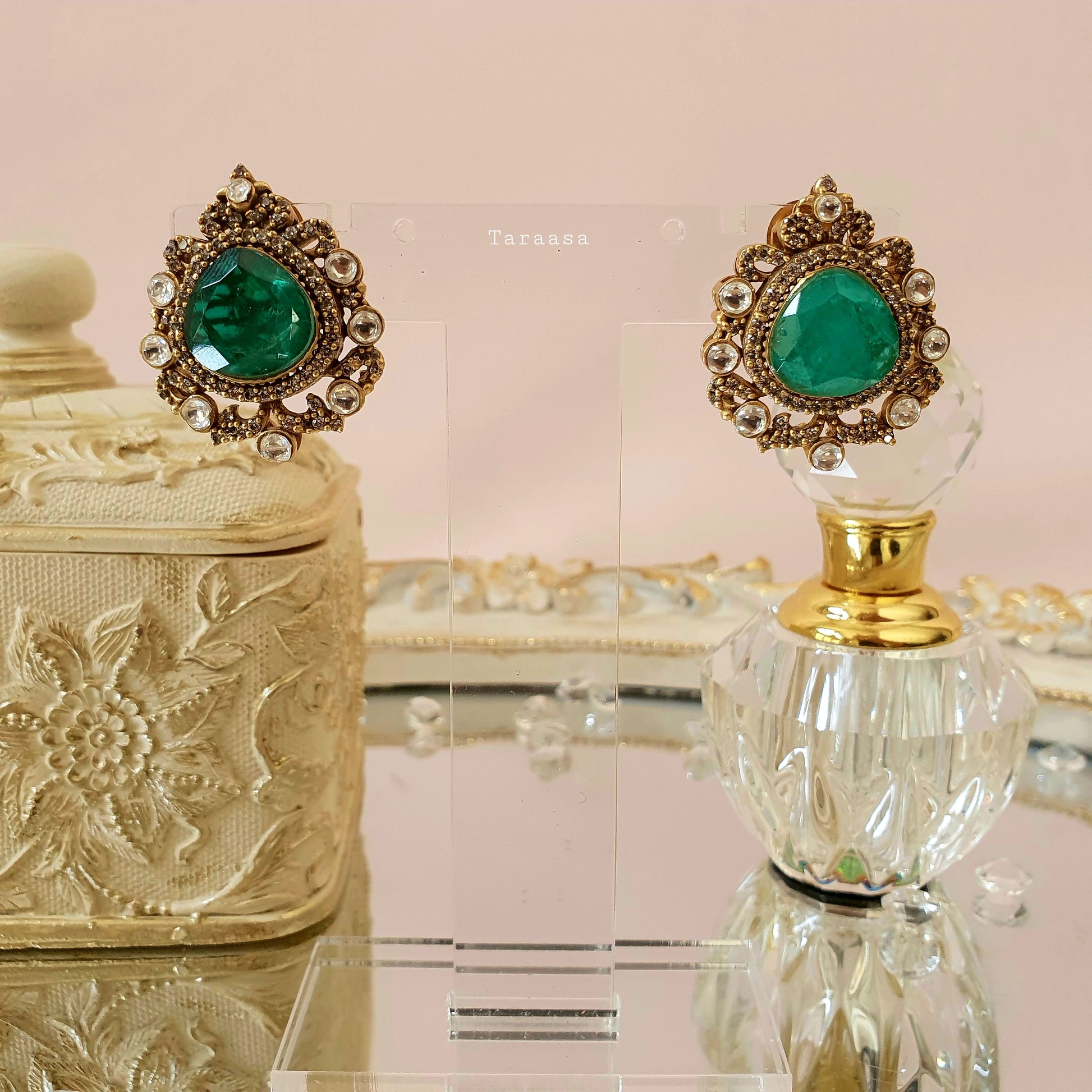 A symphony of heritage & artisinal mastery, crafted to echo eternity. A radiant stone surrounded by a halo of kundan stones. The delicate curves whisper grace and elegance. These luxury Kundan studs are not just jewels, but portraits of royalty.