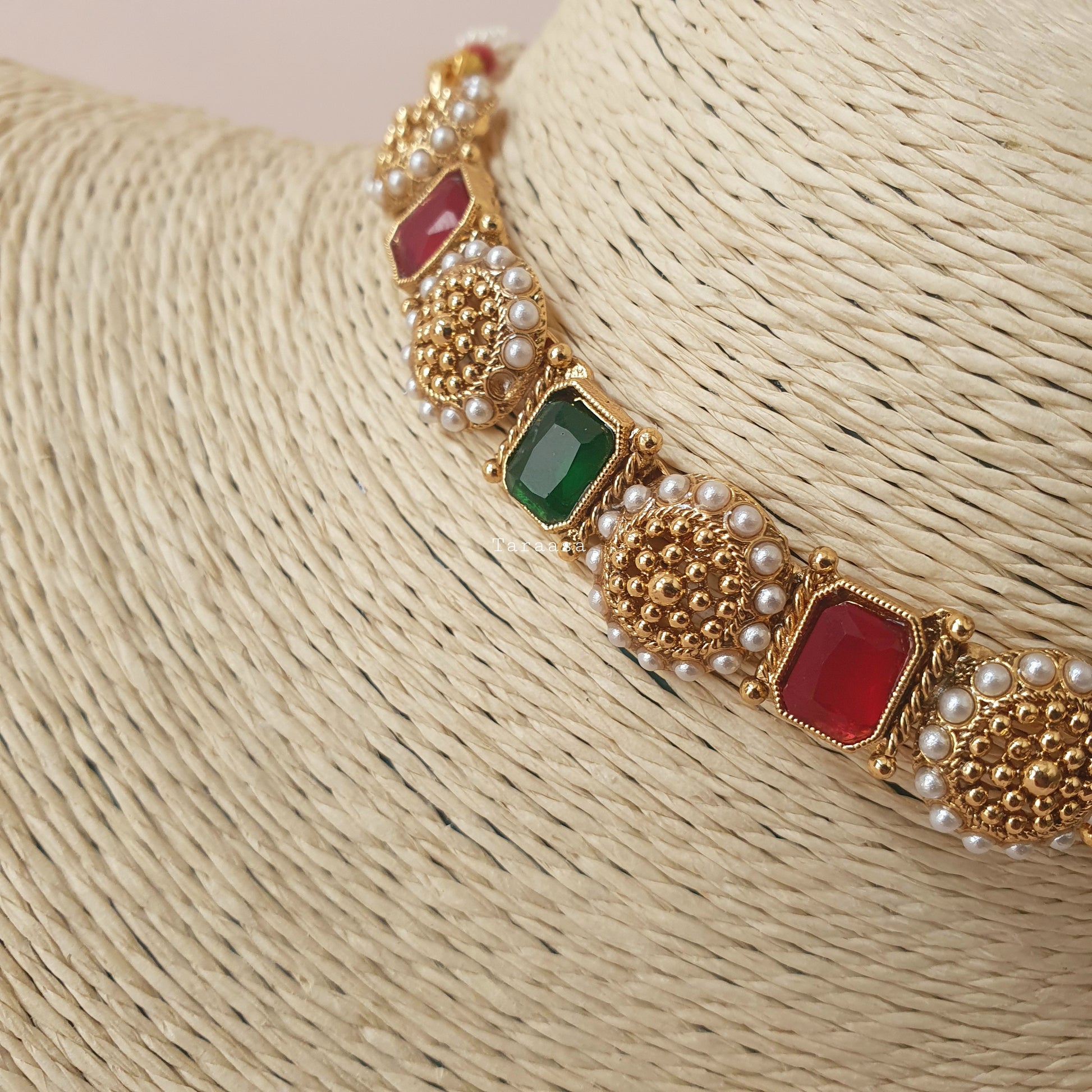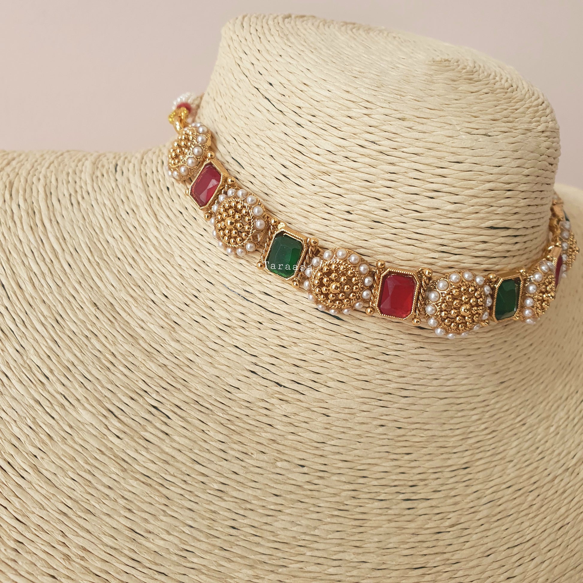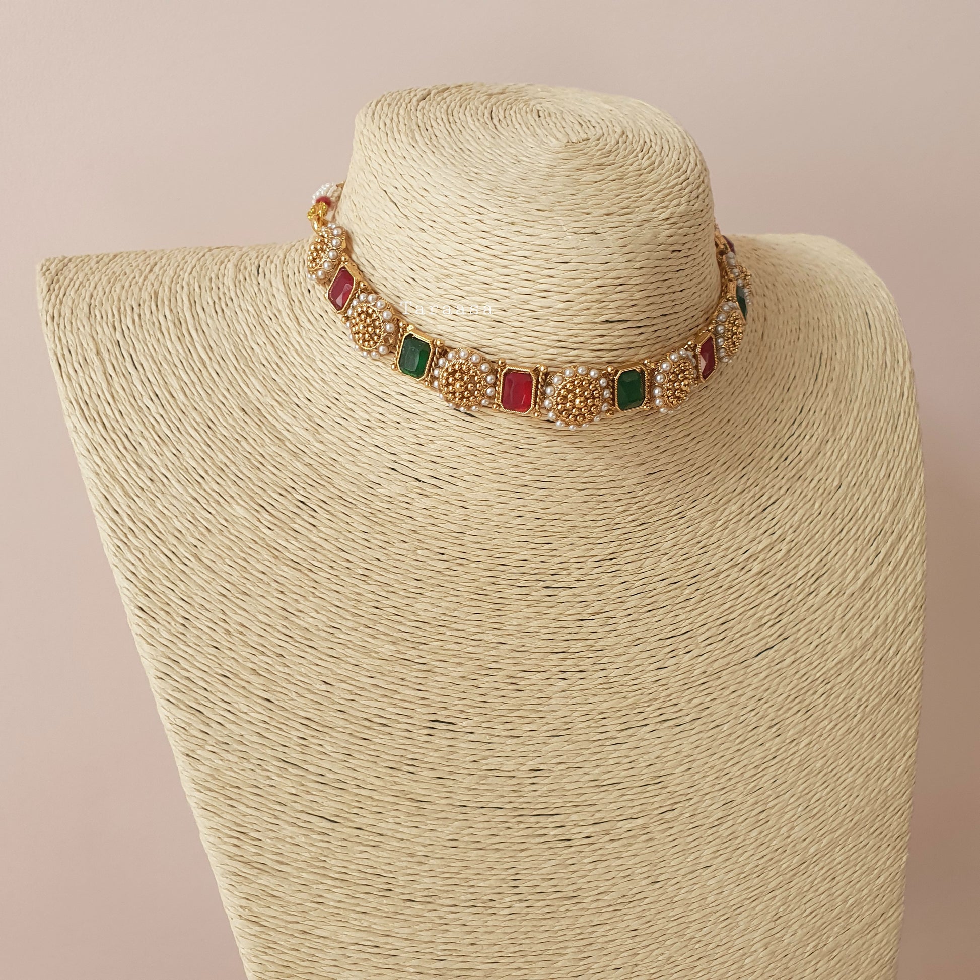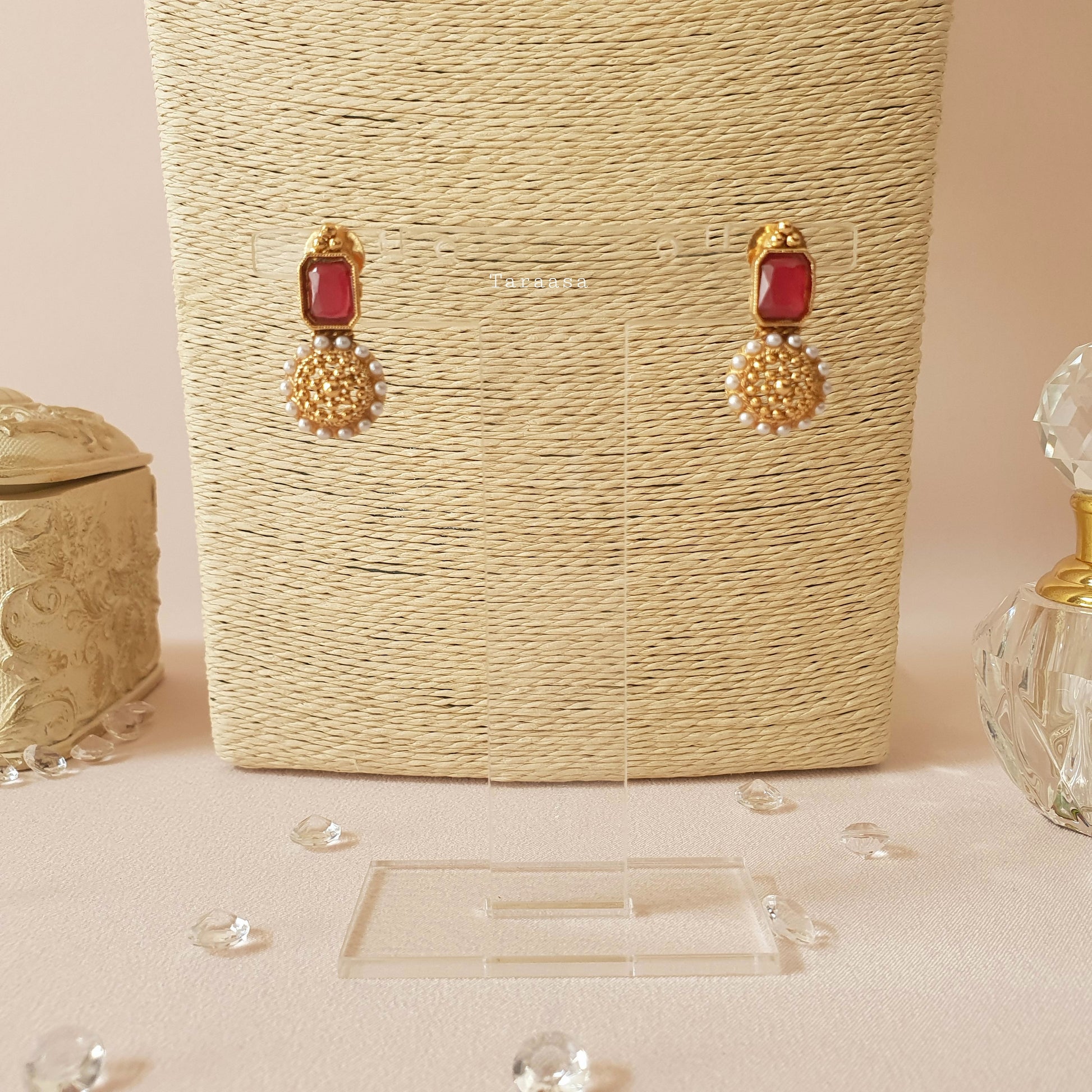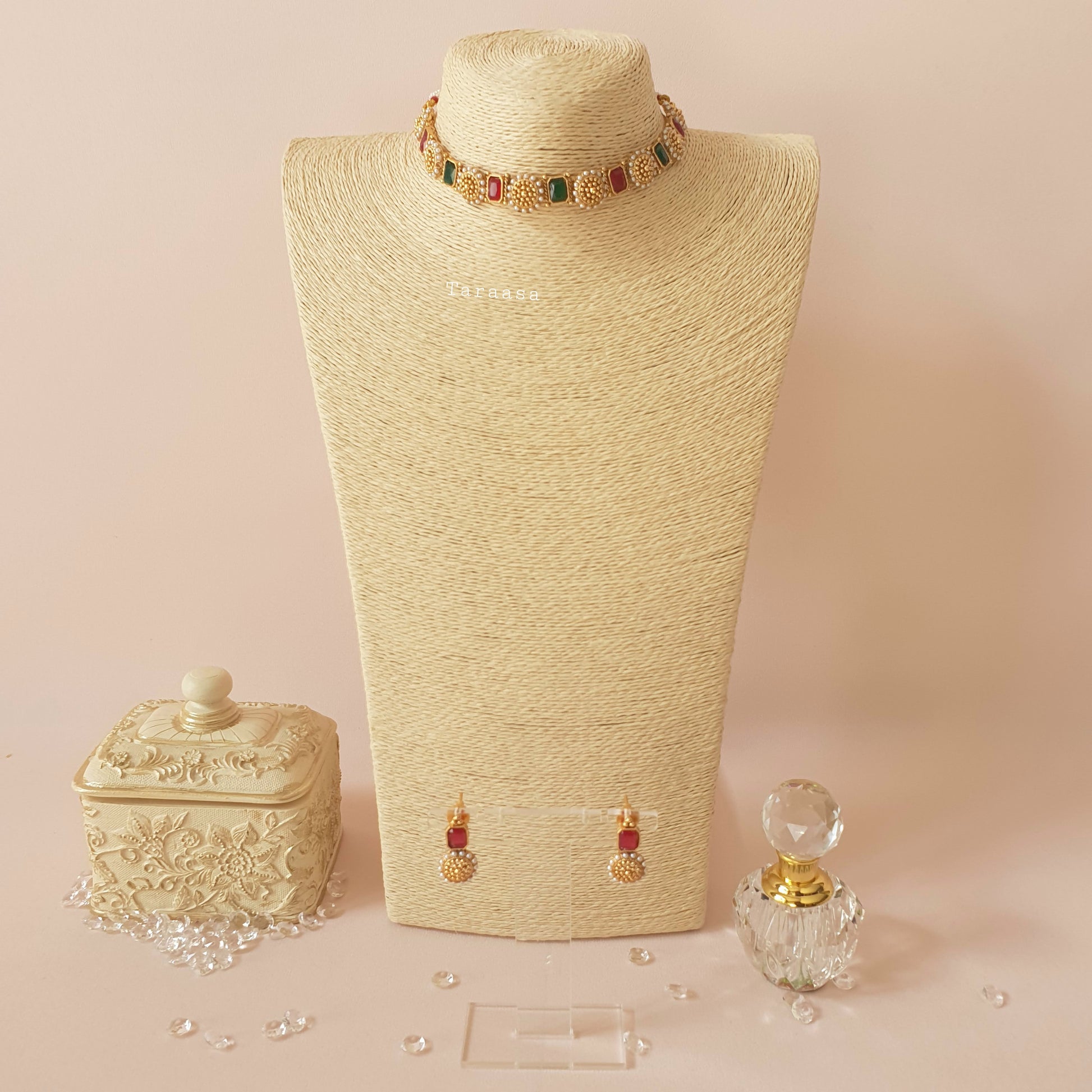 A beautiful harmony of tradition and modernity, this gold-toned set is exquisitely finished with alternating tiny pearls and gleaming glass stones. Delicate drop earrings add the perfect final flourish, completing a look that is both timeless and versatile — effortlessly suited for every generation, from the little ladies to our elegant grandmothers.