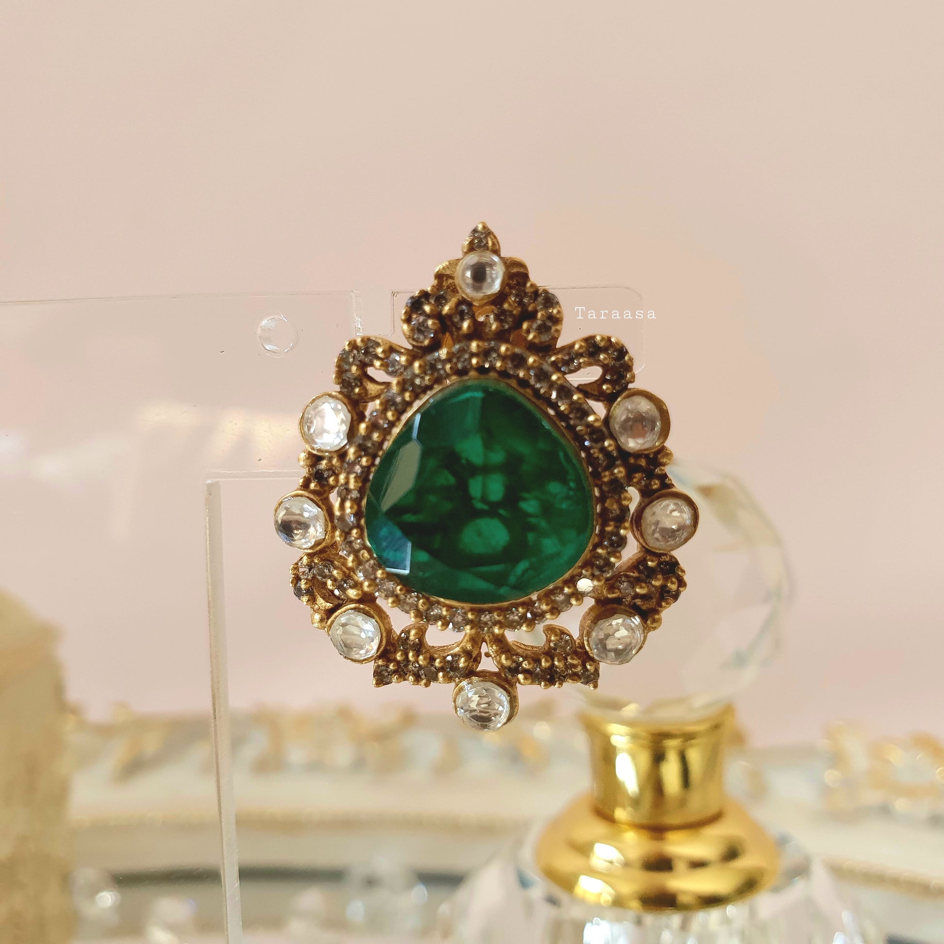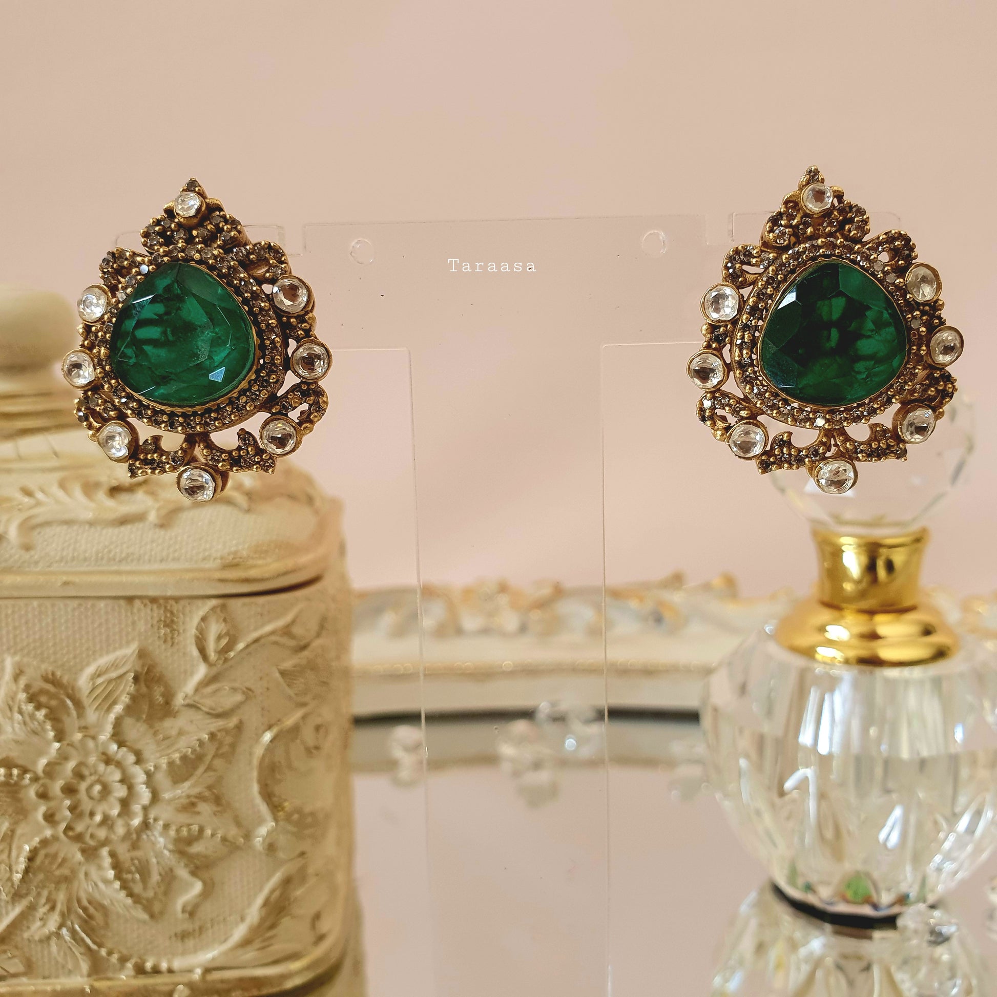 A symphony of heritage & artisinal mastery, crafted to echo eternity. A radiant stone surrounded by a halo of kundan stones. The delicate curves whisper grace and elegance. These luxury Kundan studs are not just jewels, but portraits of royalty.