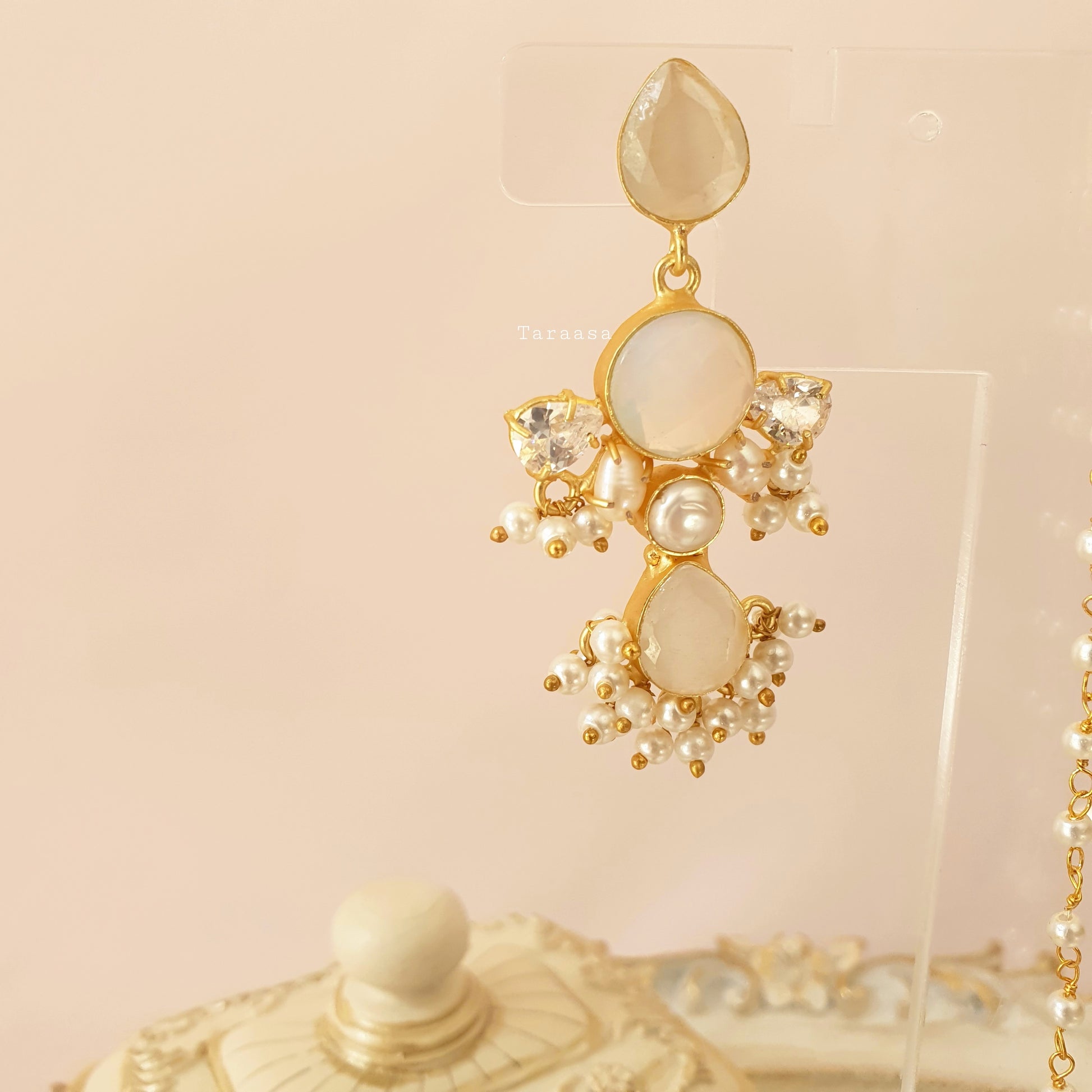 Elegant and timeless, this set showcases white onyx finished with delicate pearl detailing, it’s the perfect choice for brides, bridesmaids, or festive occasions where grace takes centre stage.
