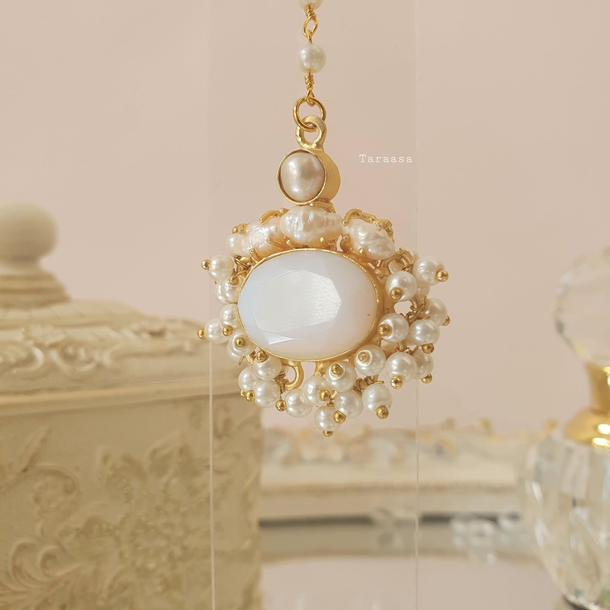 Elegant and timeless, this set showcases white onyx adorned with freshwater pearls and finished with delicate pearl detailing, it’s the perfect choice for brides, bridesmaids, or festive occasions where grace takes centre stage.