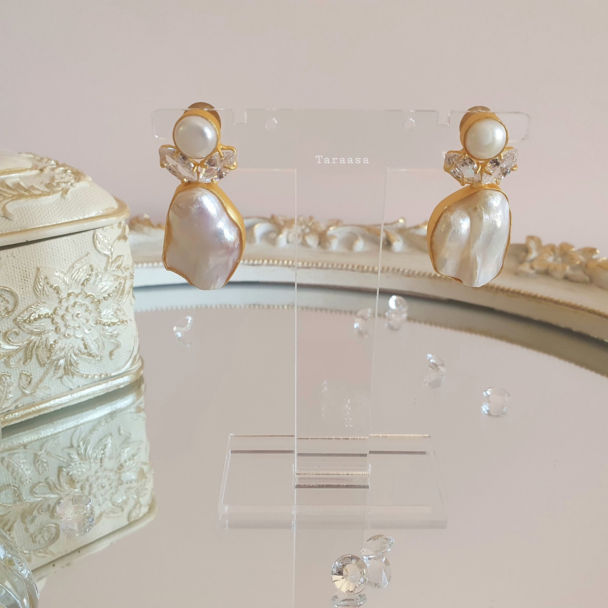 An eternal beauty, these fresh water pearl earrings are a simple yet eye-catching design. The crystals add an elegant finishing touch.