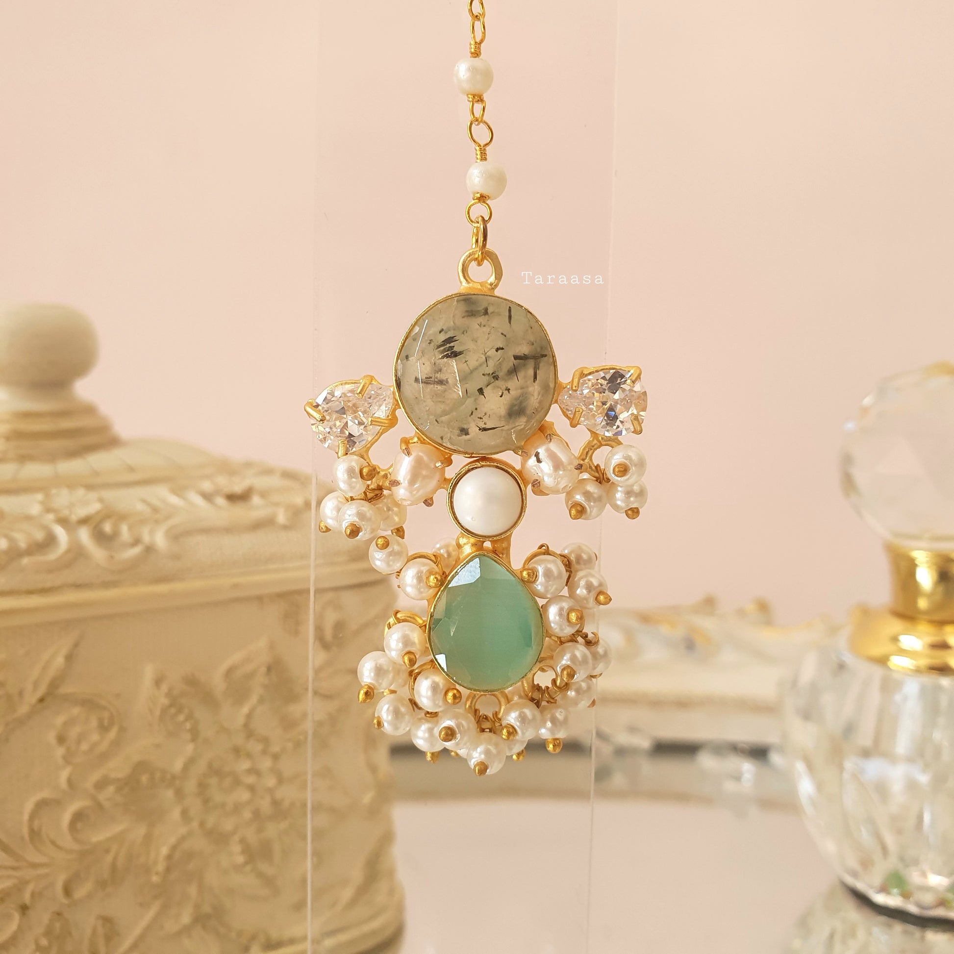 Jade & Light Green Marble Onyx Maang Tikka Set