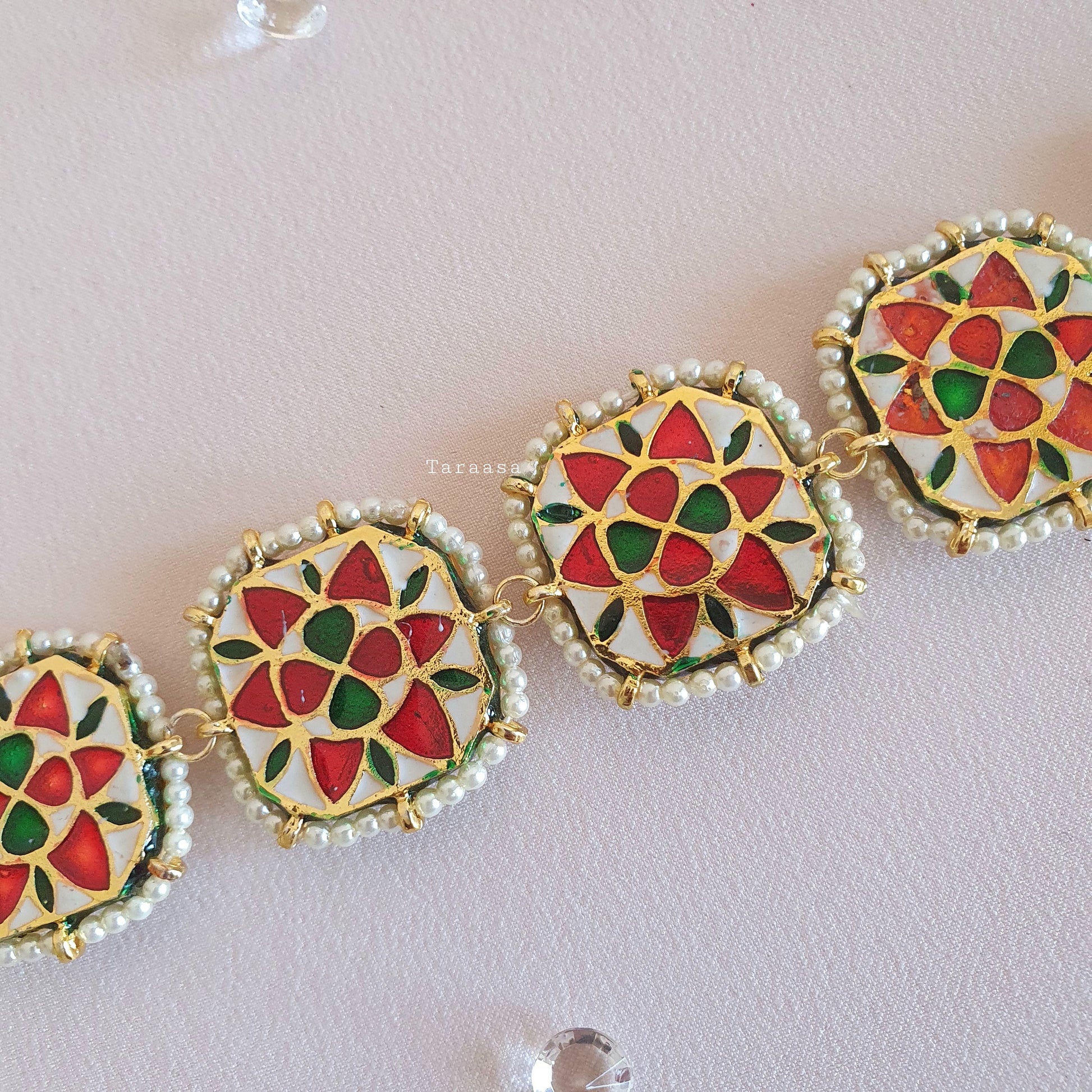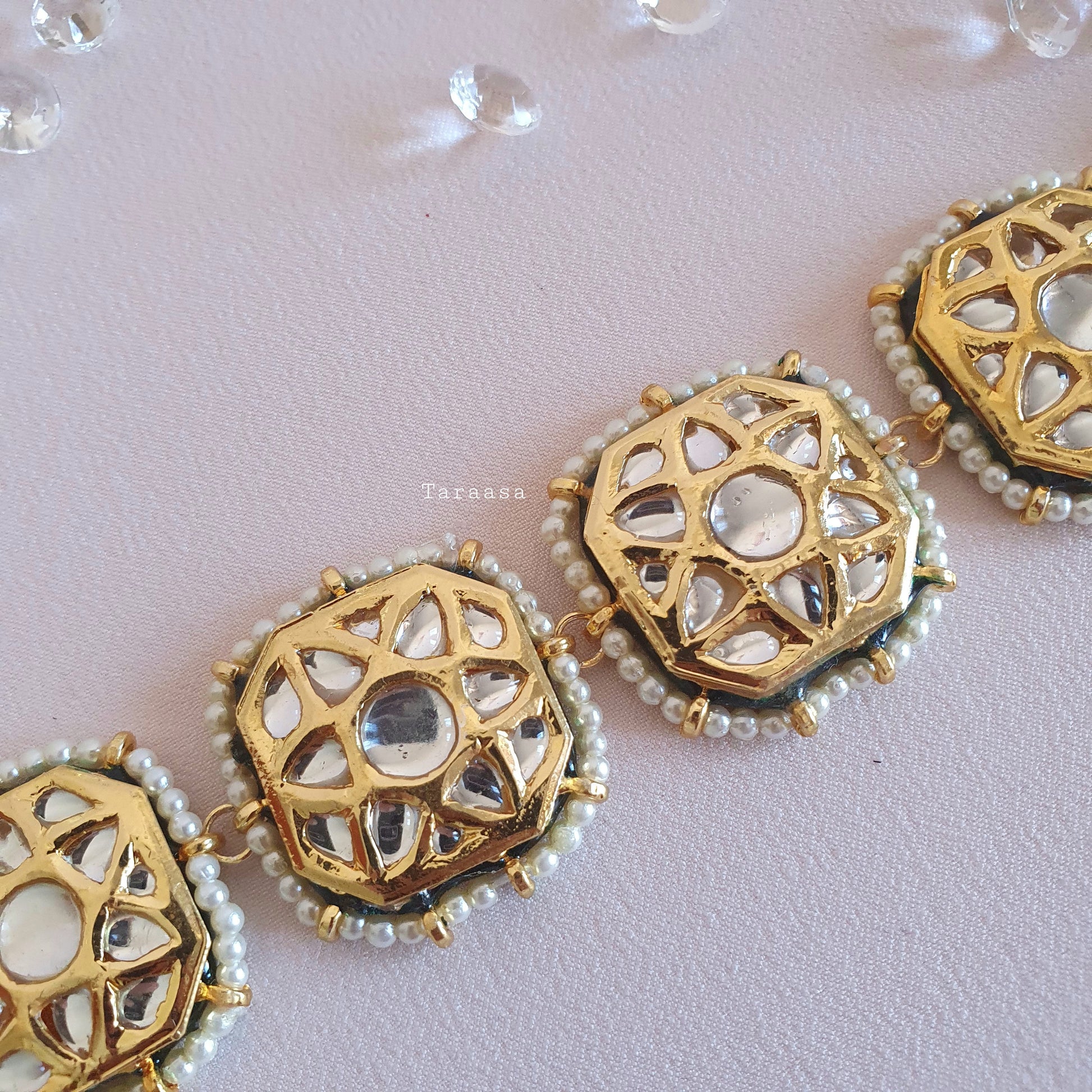 Add a royal yet modern touch to your look with our sheeshpools! Wrapped in gold with gleaming kundan stones and surrounded by the finest pearls, with a reversible meenakari backing. Wear it on its own, pair it with your tikka or matapatti, or rock it as a choker! Every woman needs one!