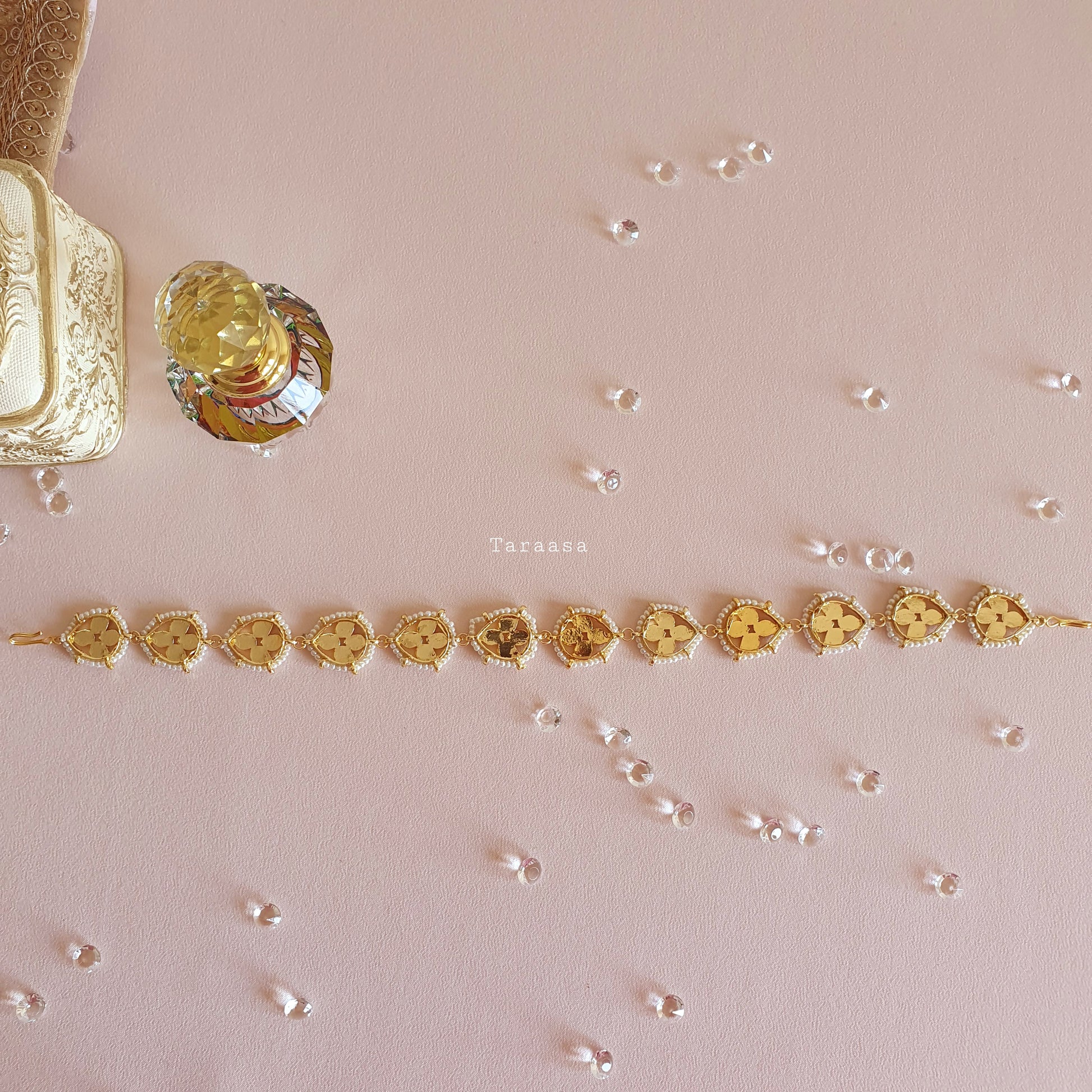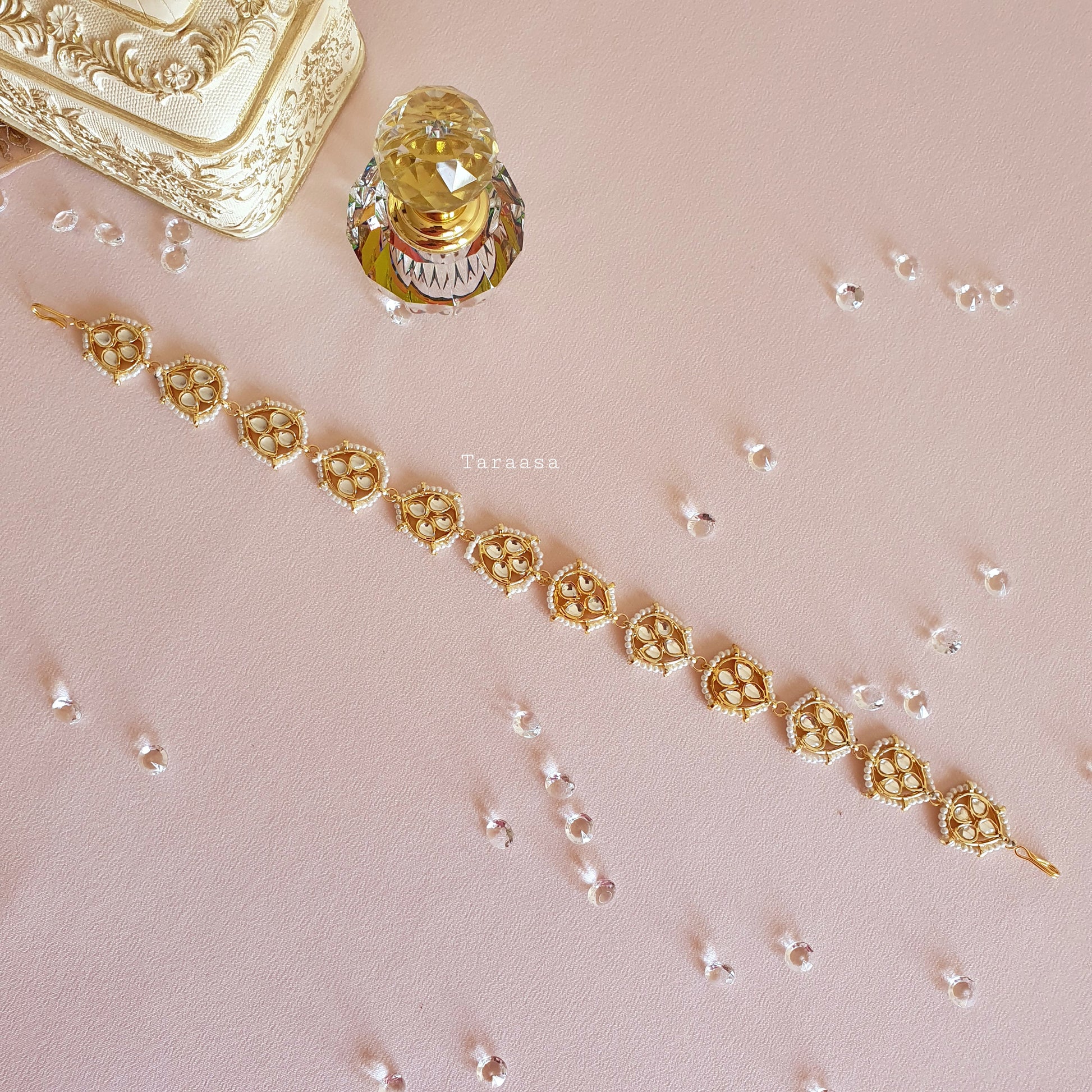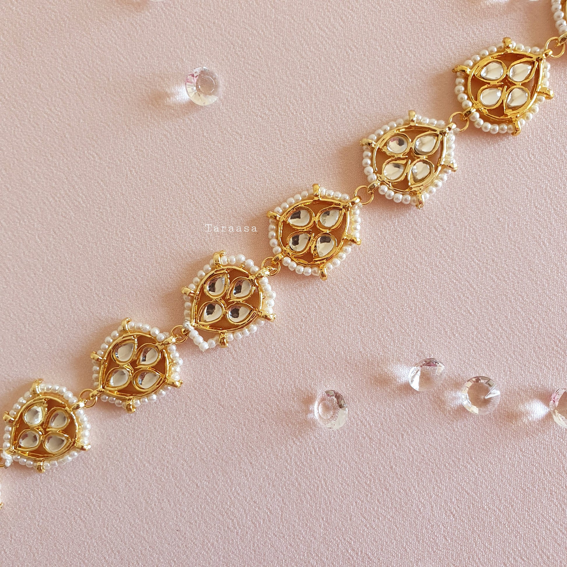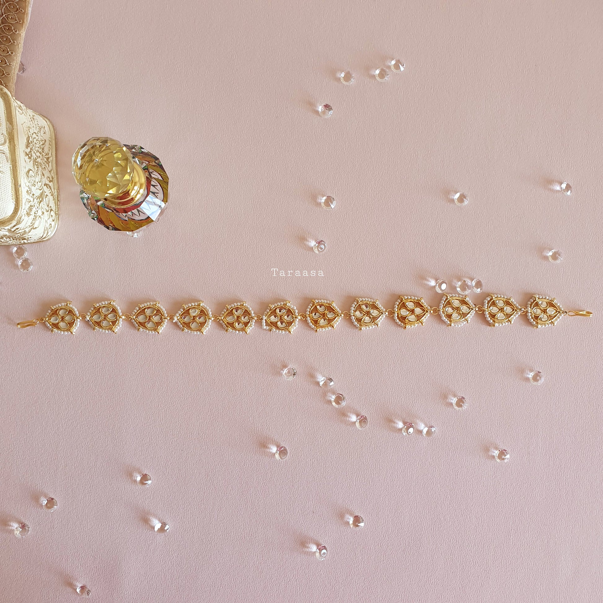 Add a royal yet modern touch to your look with our sheeshpools! Wrapped in gold with kundan stones and surrounded by the finest pearls. Wear it on its own, pair it with your tikka or matapatti, or rock it as a choker! Every woman needs one!