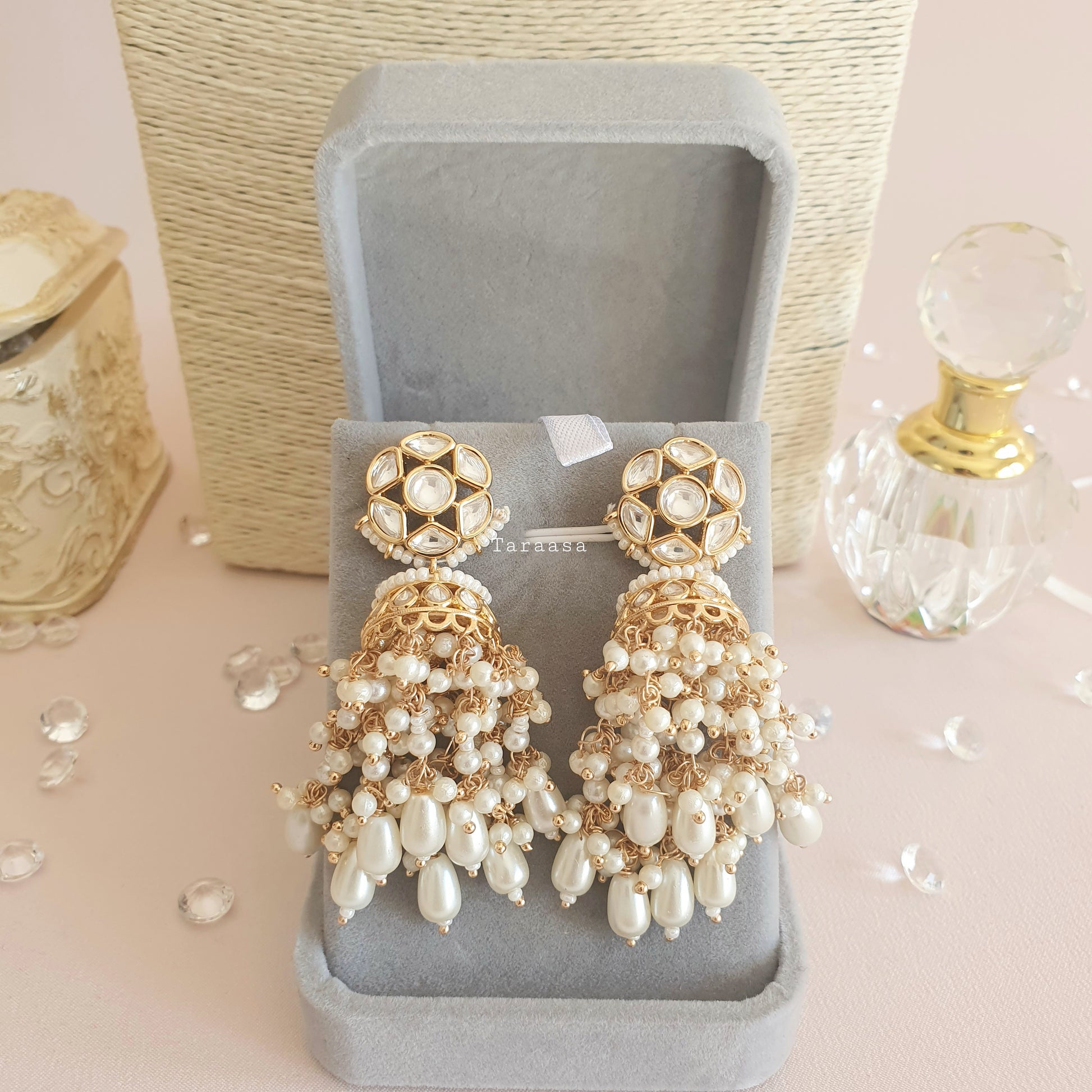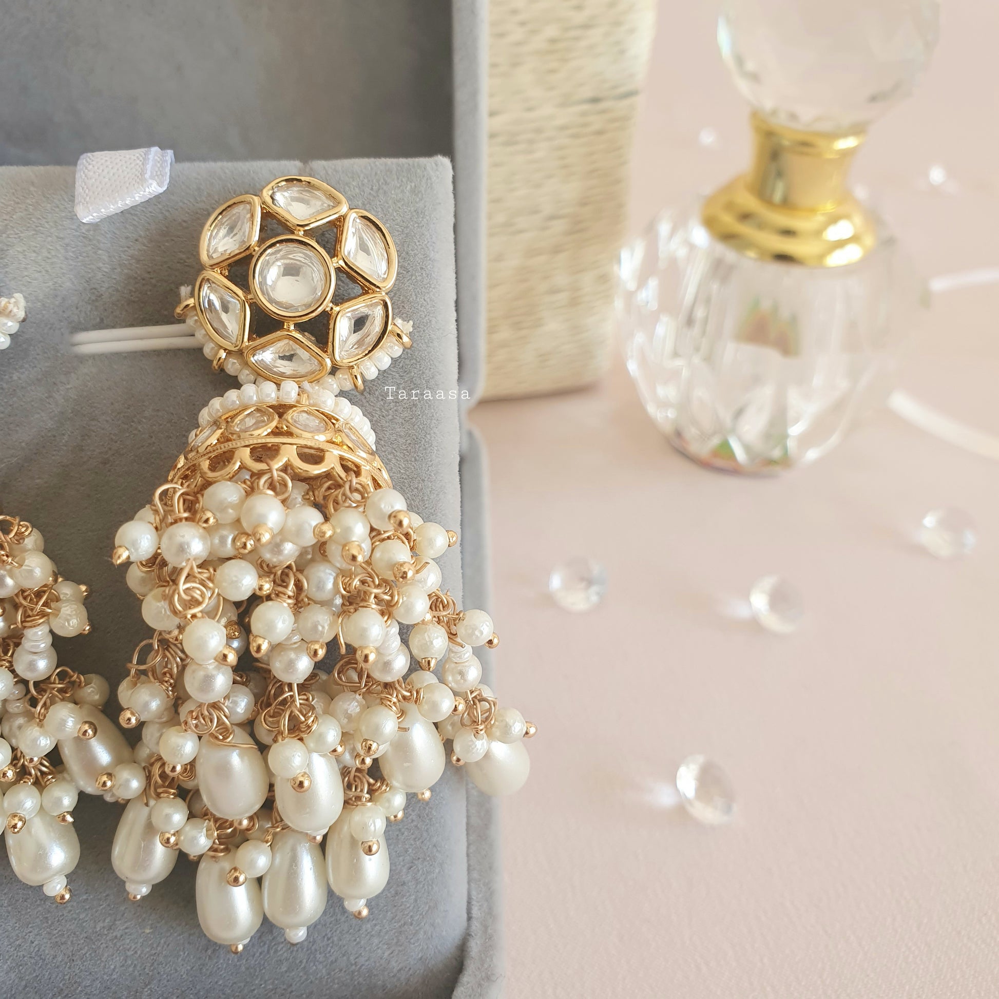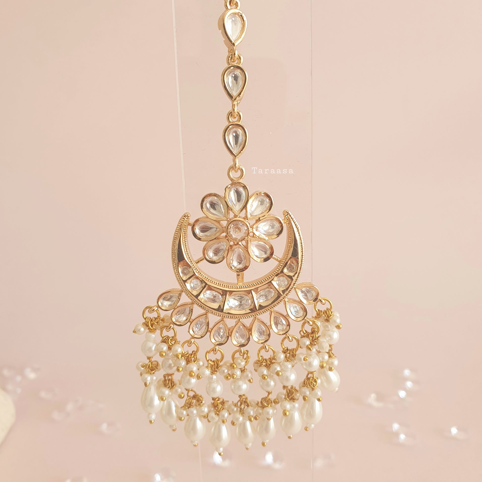 Serving all the exuberance that your bridal ensemble needs with this masterpiece bridal set, studded in quality kundan stones and carefully hand strung in layers and layers of pearls for unparalleled quality. The extravagant jumkhi earrings and large tikka bring this luxury bridal set together to cater to just what a millennial bride seeks!