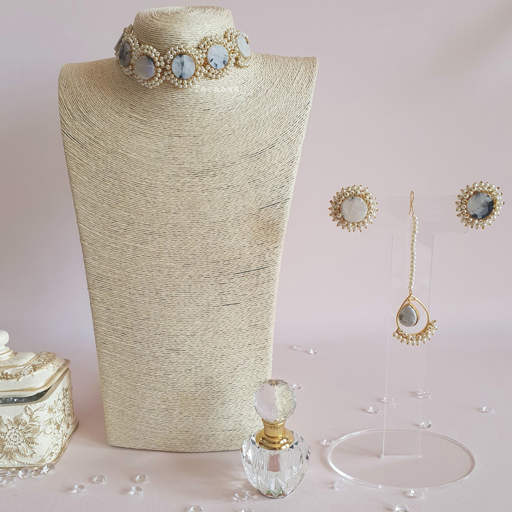 Elegance personified with our new crystal quartz choker sets, which are so versatile for eastern and western wear.