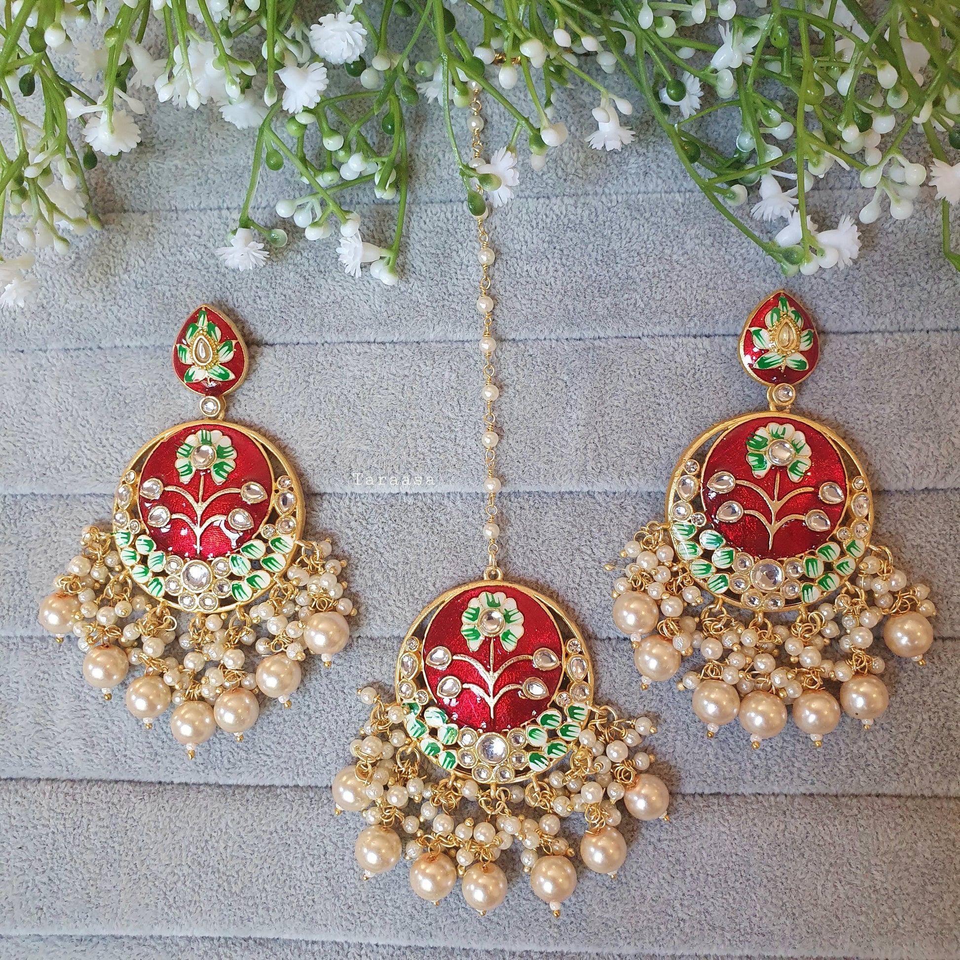 Set: One pair of earrings and tikka