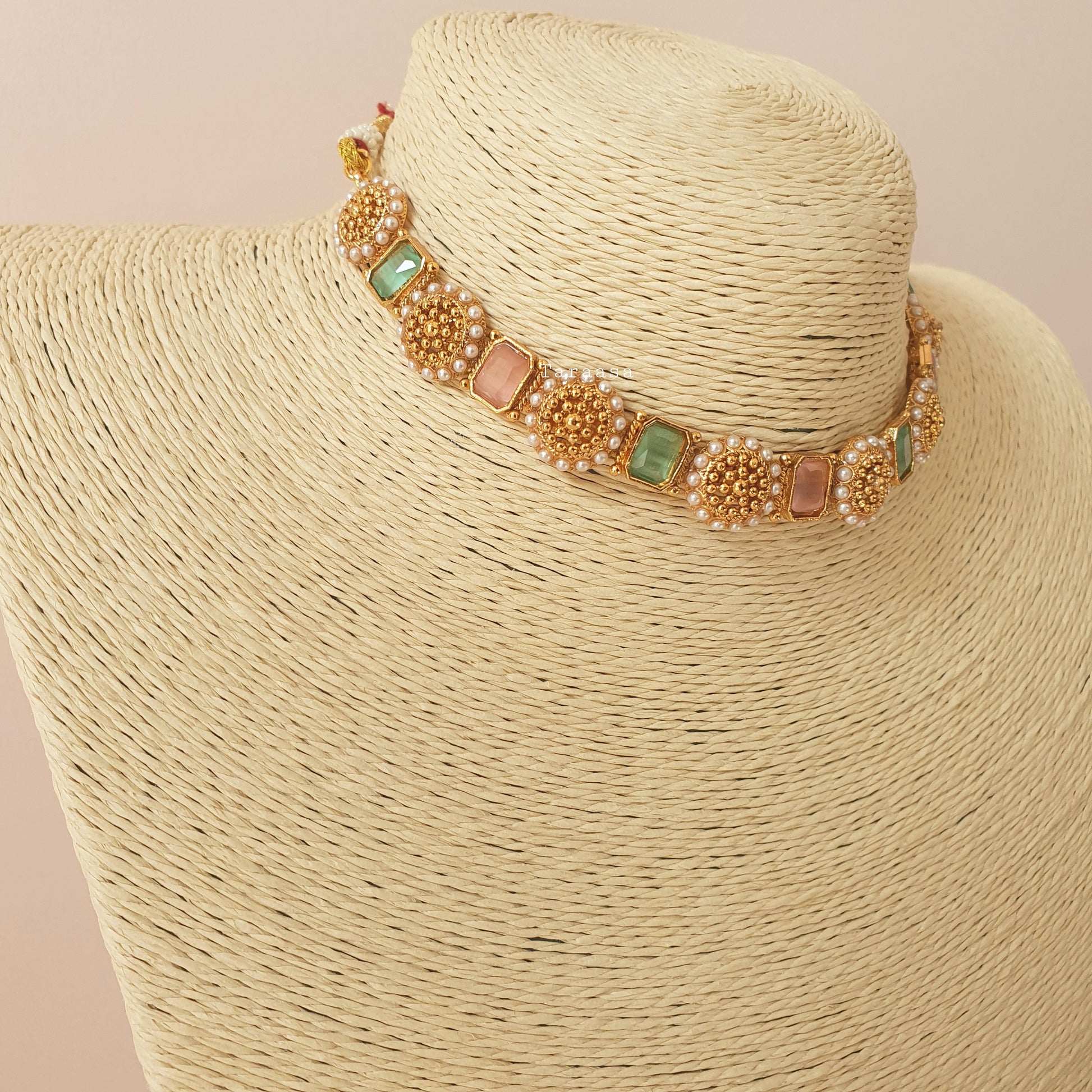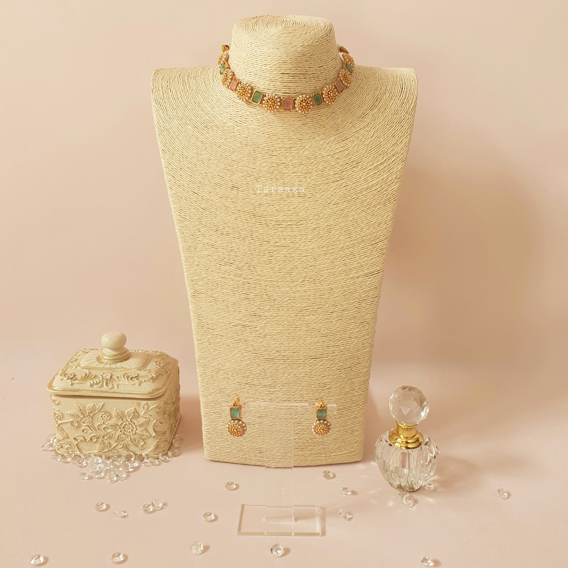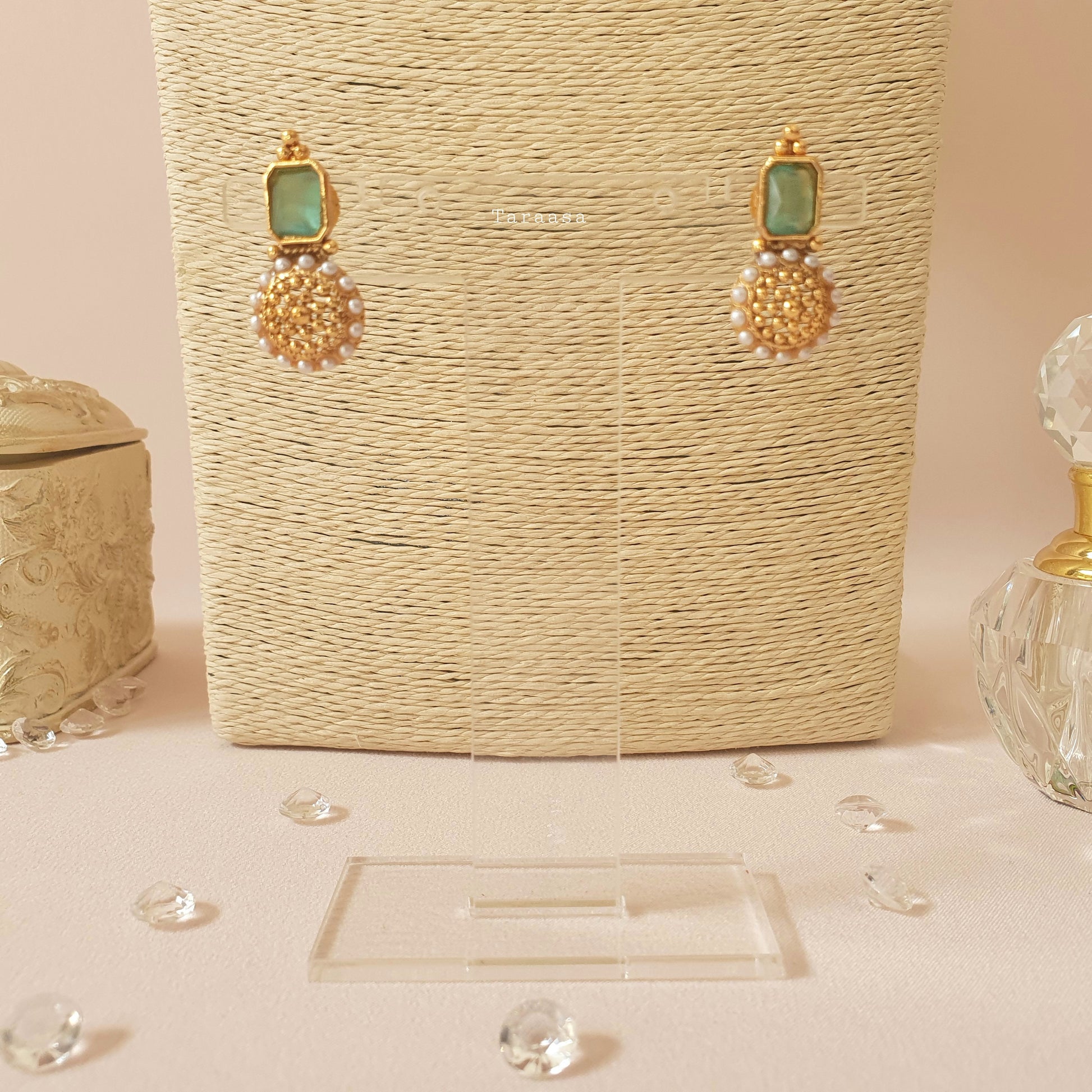 A beautiful harmony of tradition and modernity, this gold-toned set is exquisitely finished with alternating tiny pearls and gleaming glass stones. Delicate drop earrings add the perfect final flourish, completing a look that is both timeless and versatile — effortlessly suited for every generation, from the little ladies to our elegant grandmothers.